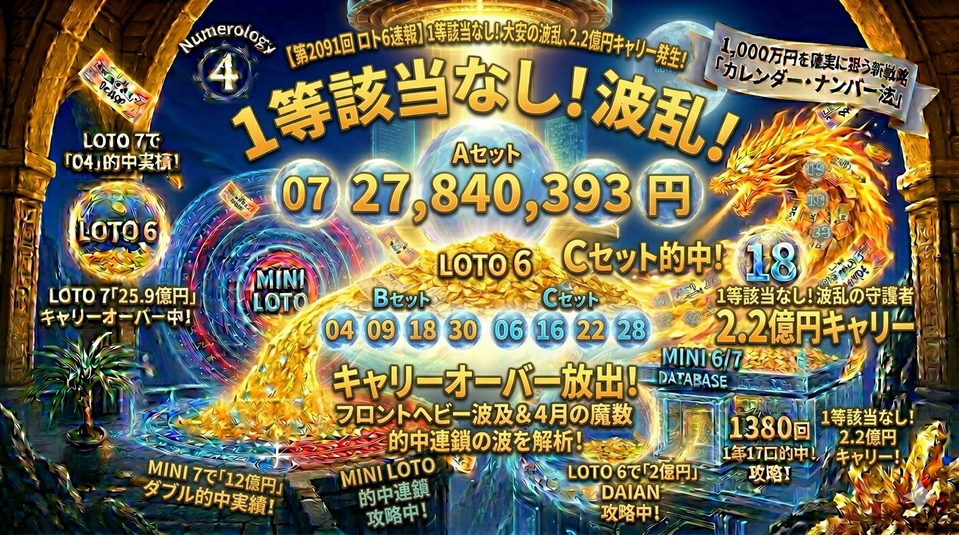【第2091回ロト6速報】大安の波乱!1等該当なしでキャリー2.2億円発生。的中連鎖の予兆を解析