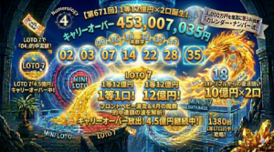 ロト7の4.5億円、そしてロト6の2.2億円。今、LOTO界には合計「約7億円」のキャリーオーバーが漂っています。この巨大なチャンスを逃す手はありません。